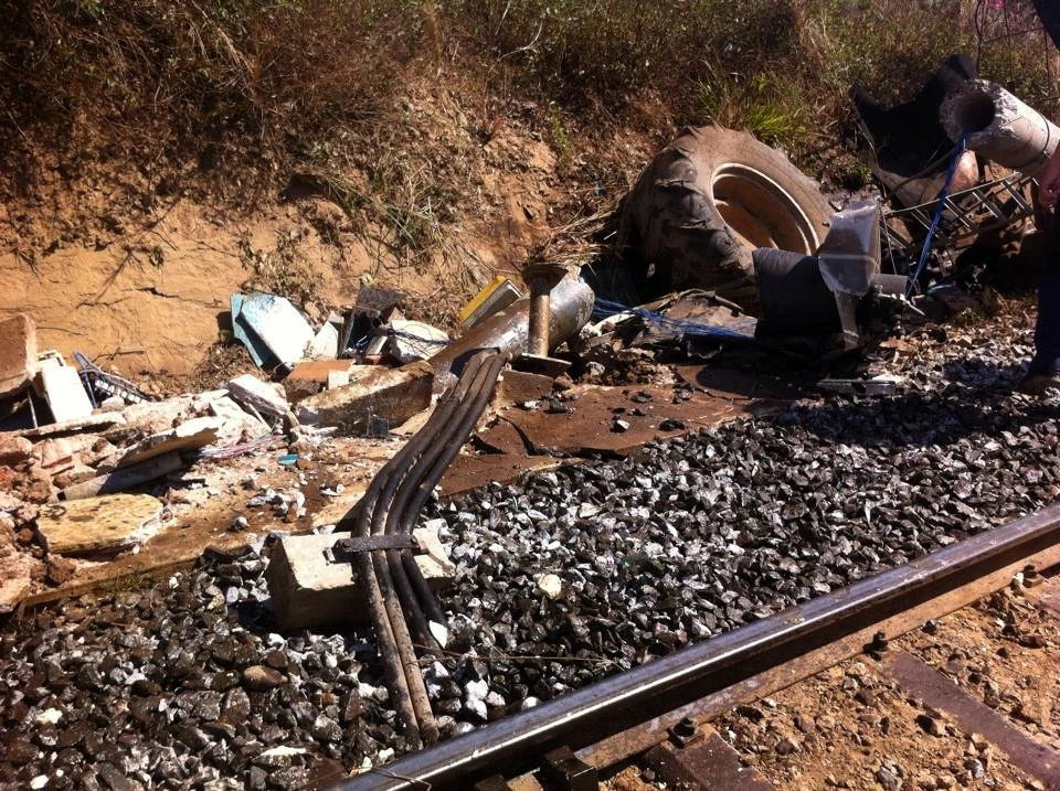 Thời điểm trên tàu khách SPT2 chạy tuyến TPHCM-Phan Thiết đã va chạm với xe máy cày chở mì (sắn) băng nang đường sắt đột ngột. Người lái máy cày bị thương rất nặng và đã được chuyển đến bệnh viện cấp cứu, đầu xe máy cày vỡ toang.