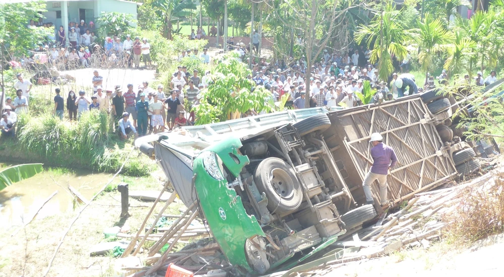 Vụ tai nạn giao thông thảm khốc xảy ra tại huyện Điện Bàn (Quảng Nam) làm 3 người chết và 30 người bị thương . Ảnh: LÊ PHI.