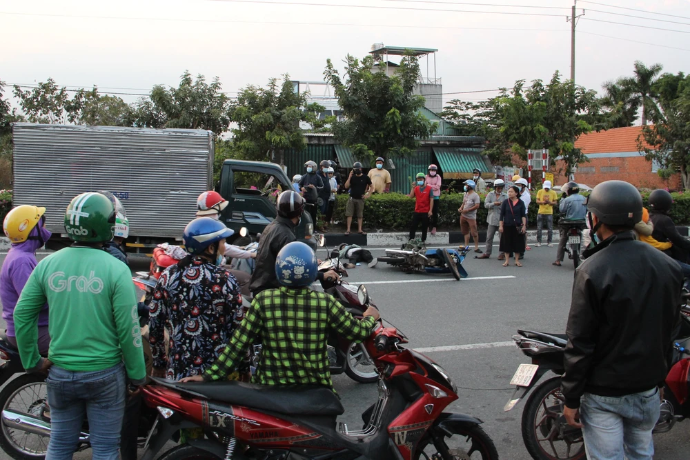 Sau va chạm, anh Đ cùng xe mô tô ngã văng ra làn đường ô tô. Do bị bất ngờ, tài xế điều khiển xe tải đang chạy phía sau không phản ứng kịp nên đã tông trúng.