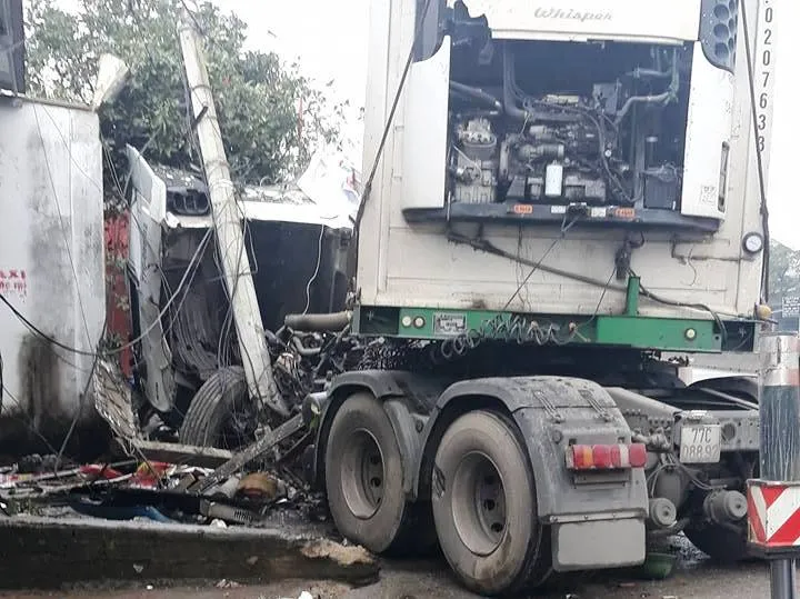 Cú va chạm mạnh khiến đầu xe khách hư hỏng nặng, đầu xe đầu kéo container cũng hỏng. Anh Phạm Văn Tú (23 tuổi, trú xã Cẩm Trung, huyện Cẩm Xuyên, Hà Tĩnh) - phụ xe khách bị tử vong tại chỗ. Tài xế xe containẻ là anh Nguyễn Hồng Kiều (33 tuổi, trú tỉnh Bình Định) và anh Hòa đều bị thương rất nặng, được đưa đi bệnh viện cấp cứu.