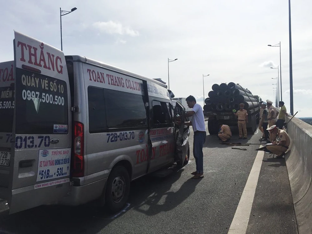 Cú đâm mạnh làm bốn hành khách ngồi trên xe 16 chỗ bị thương nặng, được nhanh chóng đưa đi cấp cứu (ba người được đưa vào BV quận 2, một người được đưa vào BV Long Thành).
