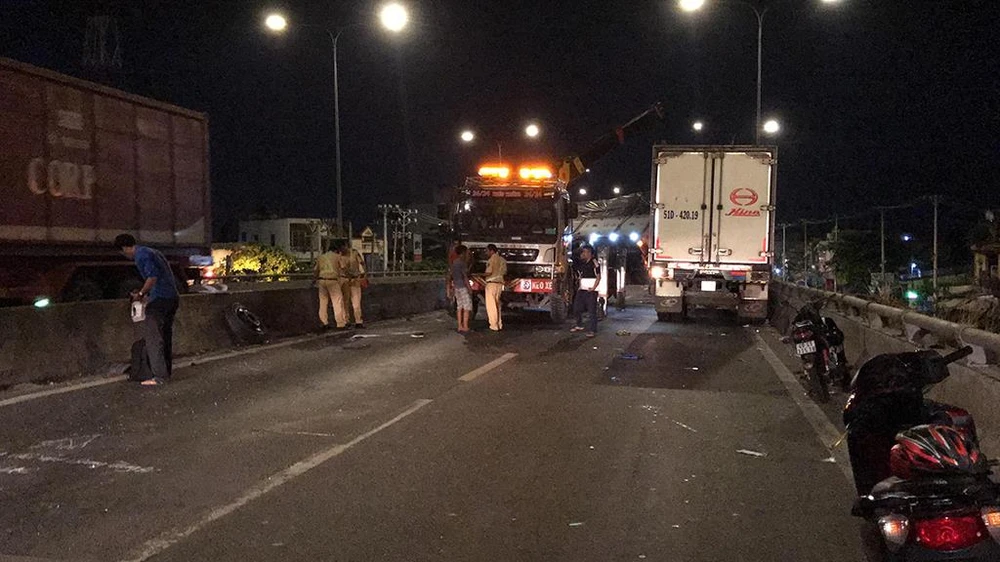 Khi đến giữa cầu vượt An Sương thuộc địa bàn phường Trung Mỹ Tây (quận 12, TP.HCM) thì bất ngờ đâm trực tiếp vào đuôi xe tải 51D-198.89 và xe tải 51D-106.43 đang dừng để vá vỏ.