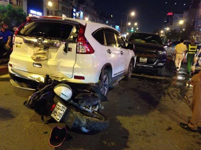 Cụ thể, theo các nhân chứng cho hay vào thời điểm trên chiếc xe ô tô biển kiểm soát Hà Nội chạy ngược chiều theo hướng Trường Chinh – Láng thì va chạm với một xe ô tô CRV. Cùng lúc này, người điều khiển chiếc xe SH đi phía sau đã bị bất ngờ với tình huống, không làm chủ được tay lái nên đã đâm vào phía sau xe CRV, khiến người này bị thương nặng.