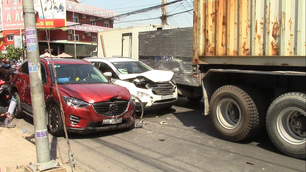 Ghi nhận tại hiện trường, hai xe ô tô bị hư hỏng nặng, một số xe máy bị húc văng lên lề đường hư hỏng nhẹ. Vụ tai nạn khiến tình trạng lưu thông của các xe qua khu vực gặp khó khăn gây ùn ứ kéo dài.