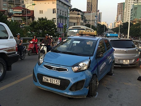 Một số nhân chứng cho hay vào lúc 16 giờ chiều, chiếc xe taxi mang BKS 30A-501.54 lưu thông qua cầu vượt hướng Lê Văn Lương - Láng Hạ thì xảy ra va chạm với xe taxi BKS 29A-931.52 chạy ngược chiều, rồi đâm tiếp vào một ô tô phía trước khiến cả ba xe đều bị hư hỏng. Một hành khách trên chiếc xe taxi BKS 30A-501.54 bị thương phải đi cấp cứu.