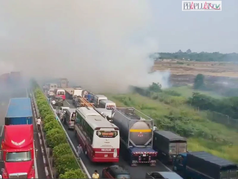 Bên cạnh đó, tiến hành phun nước dập lửa bằng xe bồn và các bình chữa cháy tại chỗ. Đồng thời, nhanh chóng thông tin trên VOV giao thông và bảng điện tử VMS để cảnh báo đến người tham gia giao thông trên tuyến. Ngoài ra, thông báo lực lượng cảnh sát giao thông C67 điều tiết giao thông và phối hợp với lực lượng cứu hộ, công an giao thông huyện Long Thành đo vẽ hiện trường và đưa các xe ra khỏi cao tốc.