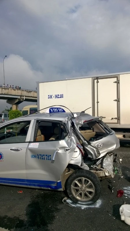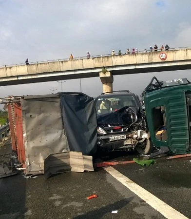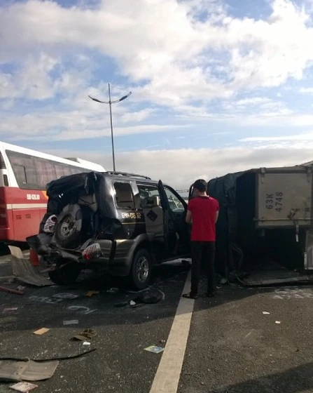 Vụ tai nạn liên hoàn giữa năm chiếc xe xảy ra vào lúc rạng sáng 28-9, tại Km 27 đường cao tốc TP.HCM - Trung Lương hướng từ Tiền Giang về TP.HCM (đoạn qua địa phận huyện Thủ Thừa, Long An). Hậu quả làm một người chết tại chỗ, một người tử vong trên đường đưa đi cấp cứu.