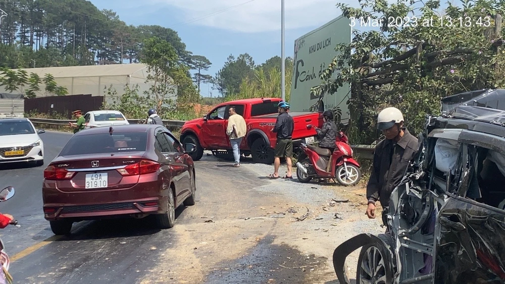 Chiều 3-3, tại đèo Mimosa đoạn qua địa bàn phường 10, TP Đà Lạt xảy ra vụ tai nạn giao thông liên hoàn.
