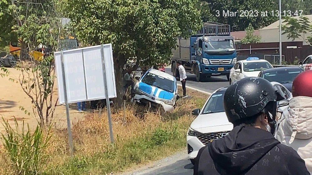 Khi đến Km227+900 (QL20) thì mất lái, tông vào xe taxi 79A-09794 do tài xế Phạm Thị Phương Hoa điều khiển khiến chiếc taxi này rớt xuống mương thoát nước.