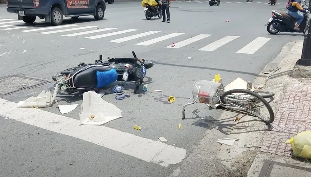 Đến 12 giờ ngày 9-8, công an quận 6, TP.HCM vẫn đang xử lý hiện trường và điều tra nguyên nhân vụ tai nạn giữa ba phương tiện gồm xe tải, xe máy và xe đạp trên đường Kinh Dương Vương vào sáng cùng ngày.