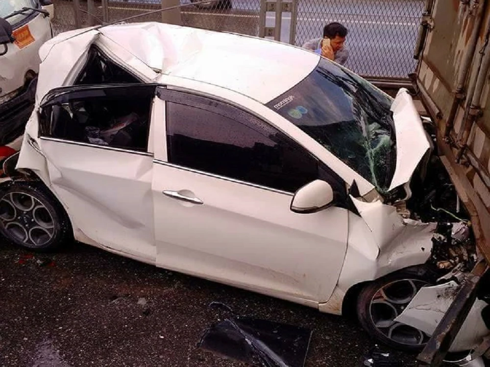 Hậu quả vụ tai nạn khiến bốn xe ô tô bị hư hỏng nặng. Trong đó, một xe bốn chỗ bị kẹp giữa hai xe tải dẫn đến biến dạng.