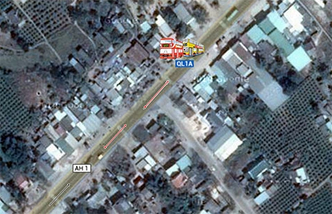 Địa điểm hai xe khách đối đầu (mũi tên màu đỏ là hướng lưu thông từ TP.HCM-Phan Thiết)