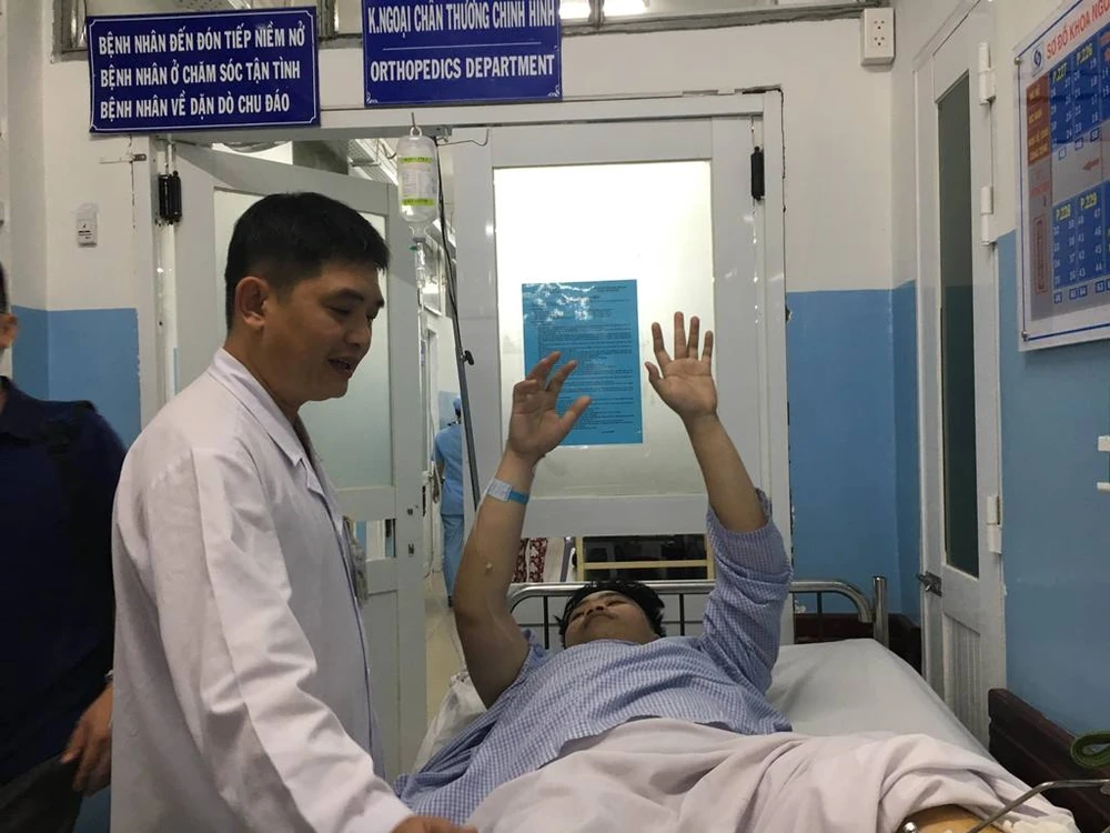 Một trường hợp là anh PHB (23 tuổi, quê Khánh Hòa) gãy 1/3 xương đùi bên trái đã được phẫu thuật cấp cứu và chuyển khoa Chấn thương chỉnh hình tiếp tục điều trị.