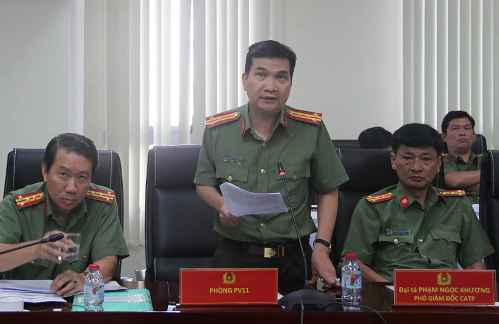 Đại tá Nguyễn Sỹ Quang, Trưởng phòng Tham mưu Công an TP, thông báo công tác đảm bảo an ninh trật tự Tết nguyên đán.