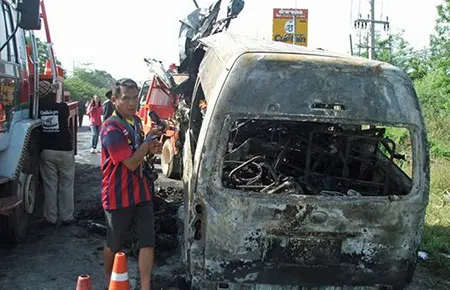 Theo Bangkok Post, tai nạn xảy ra khi xe khách chở 15 công nhân Việt Nam đi sai làn đường và đâm trực diện vào một xe tải chở đầy sắn. Bồn nhiên liệu khí hóa lỏng của xe khách bốc cháy dữ dội và đã thiêu rụi xe. Xe khách do các khách Việt Nam thuê đang trên đường đi đến tỉnh Nong Bua Lamphu thăm nhà thờ thánh Tổng lãnh thiên thần Michael.