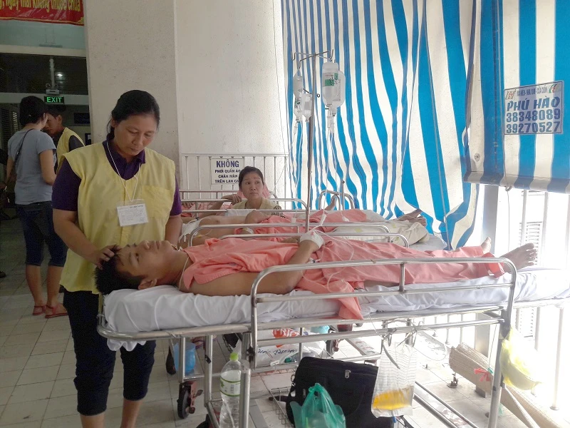 Nạn nhân Phạm Trần Thanh Tâm và mẹ tại khoa Ngoại thần kinh BV Chợ Rẫy sáng 23-5. Ảnh: HÀ PHƯỢNG