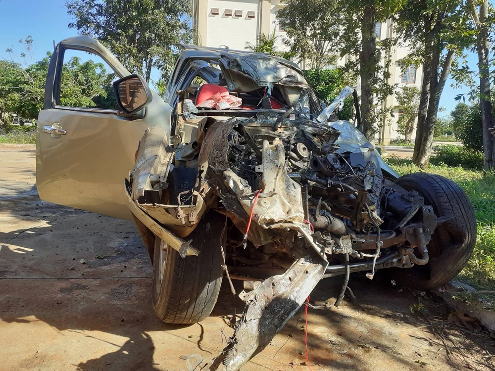 Chiếc xe bán tải biến dạng sau tai nạn