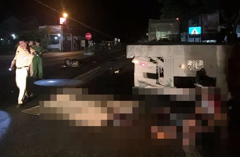 Vụ tai nạn khiến xe máy bay ra gần giữa quốc lộ, bị biến dạng hoàn toàn, phần rơmoóc bị đâm cong thanh cản sau. Cú đâm mạnh này khiến anh Thường và chị Bảo tử vong. Anh Sử bị thương nặng được đưa đến bệnh viện cấp cứu.