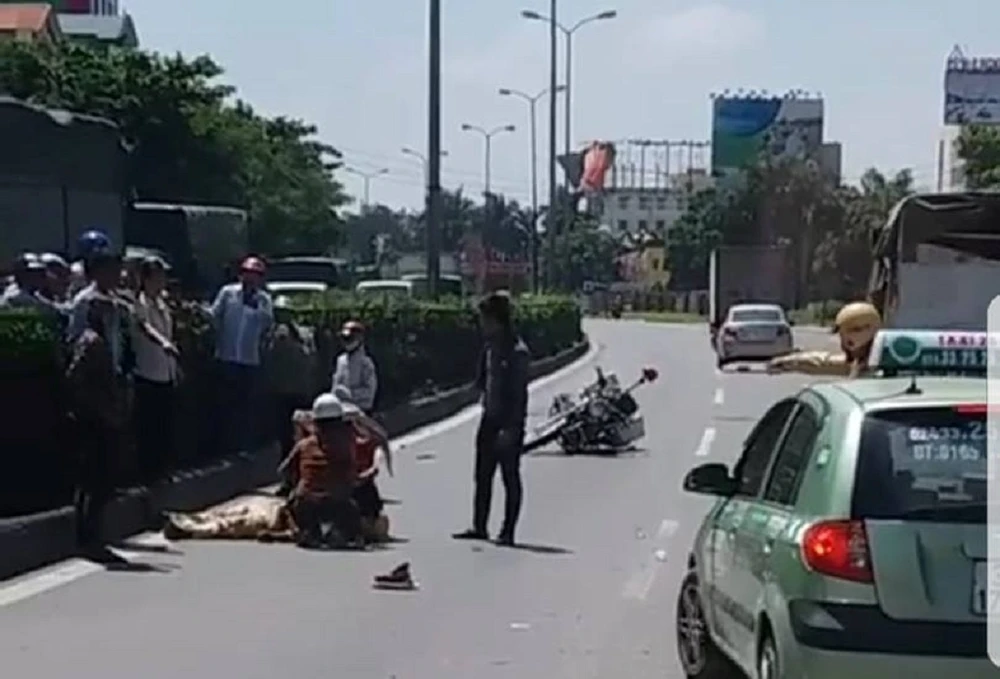 Hiện trường vụ tai nạn khiến chiến sĩ CSGT bị thương. Ảnh FB