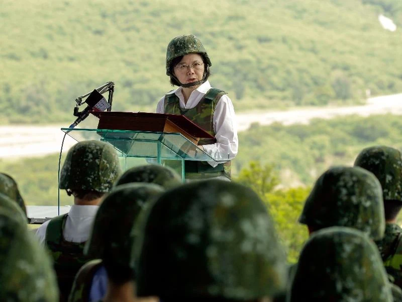 Bà Thái Anh Văn phát biểu trước các binh sĩ Đài Loan trong cuộc tập trận Hán Quang. Ảnh: EPA