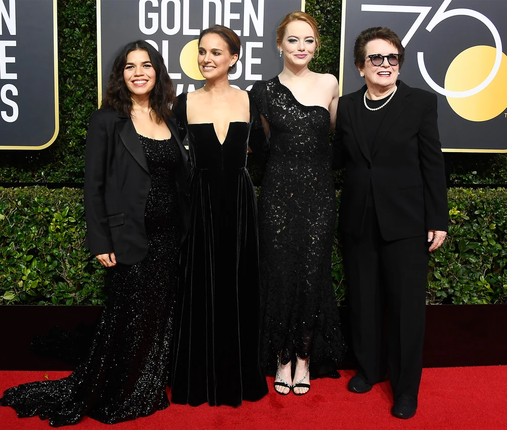 Cũng trong sự kiện nghệ thuật lớn đầu tiên của năm 2018, toàn bộ sao Hollywood gồm cả nam lẫn nữ đều mặc đồ đen để tham dự lễ trao giải. Đây là một phần trong phong trào Time's Up - một chiến dịch chống xâm hại và quấy rối tình dục được 300 phụ nữ ở Hollywood ký tên tham gia.