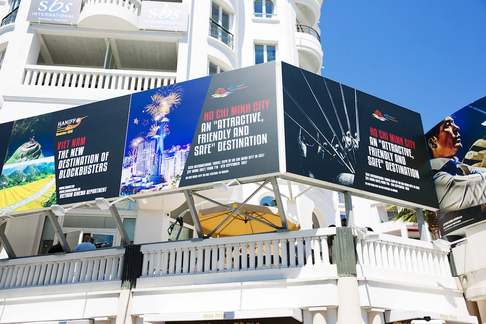 Ba panô quảng bá du lịch TP.HCM và điện ảnh Việt Nam ở LHP Cannes do Lý Nhã Kỳ tài trợ.
