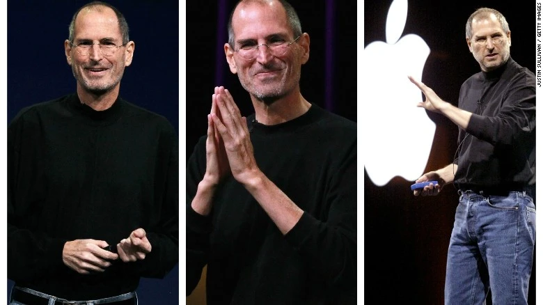 Steve Jobs nổi tiếng với áo len cao cổ màu đen, quần jean và giày đế mềm.