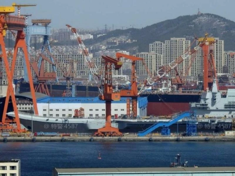 Tàu sân bay thứ hai của Trung Quốc đang được đóng tại xưởng tàu ở TP Đại Liên, tỉnh Liêu Ninh. Ảnh: WEIBO