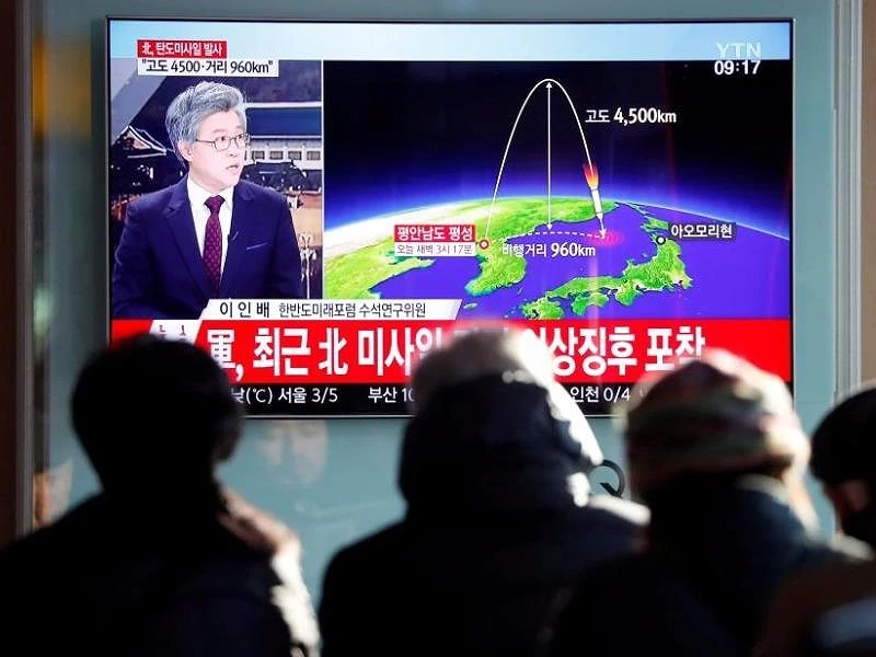 Truyền thông Hàn Quốc đưa tin về vụ phóng ICBM của Triều Tiên sáng 29-11. Ảnh: REUTERS