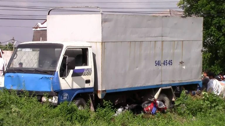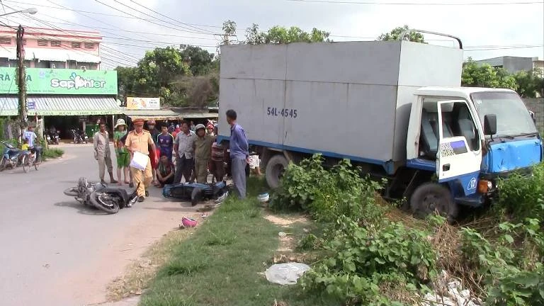 Cú tông mạnh khiến cả ba té ngã xuống đường. Một trong hai cô gái bị cuốn vào đuôi xe. Sau khi ủi hai xe máy, xe tải điên không chịu dừng lại mà tiếp tục cuốn một xe máy khác do một người đàn ông trung niên khoảng 40 tuổi chạy phía sau hai xe máy trên vào gầm.