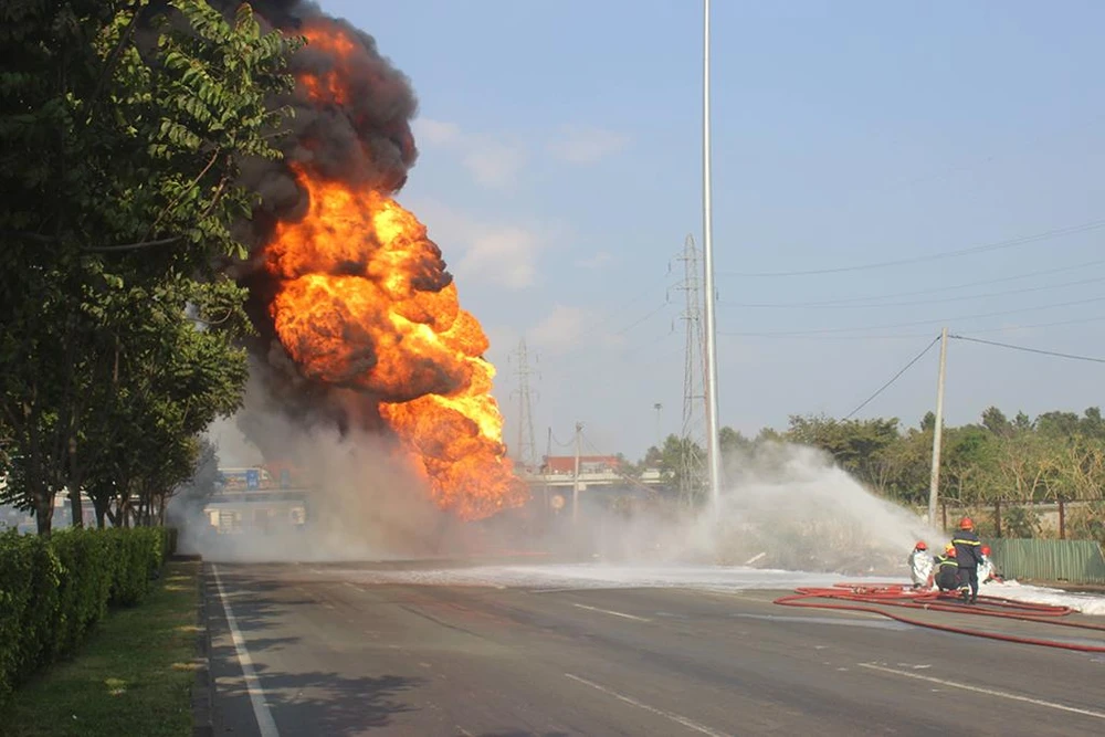 Cảnh sát PCCC quận 9 điều động nhiều phương tiện cùng hàng chục cán bộ chiến sĩ đến hiện trường khống chế đám cháy. Do xăng dầu bốc cháy nên lượng nhiệt tỏa ra lớn, công tác dập lửa gặp khó khăn. Giao thông qua khu vực kẹt cứng.
