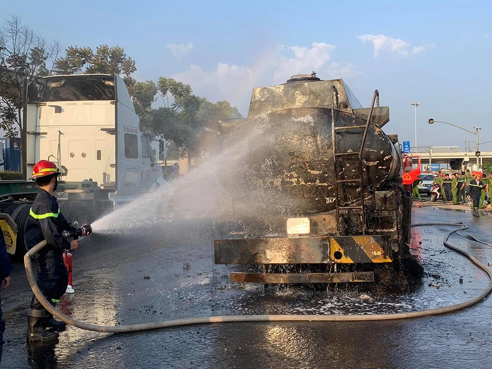 Đến hơn 16 giờ chiều, đám cháy mới được khống chế. Vụ cháy không gây thiệt hại về người nhưng khiến xe bồn cháy rụi.