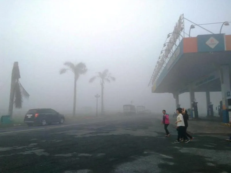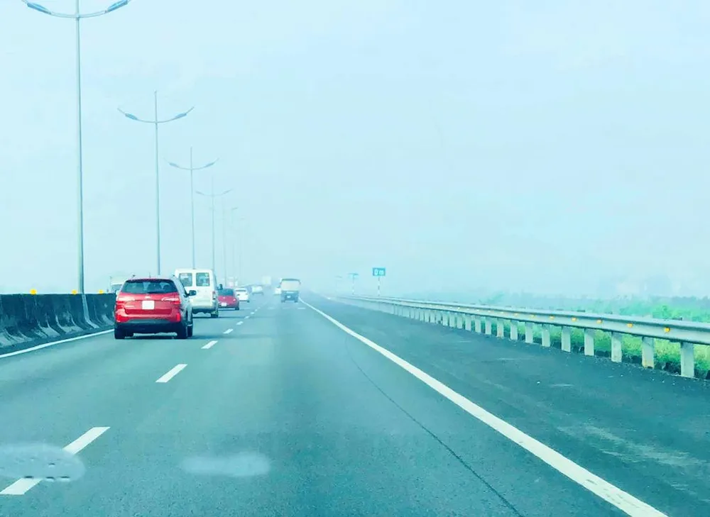 Màn sương dày đặc bao trùm cao tốc. Ảnh: HUYỀN PHẠM