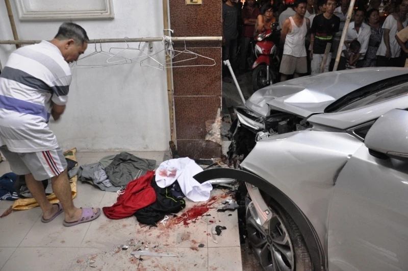 Sau khi tông bốn xe máy, chiếc xe rú ga lao lên vỉa hè tông vào chị Nguyễn Thị Mỹ Huyền (16 tuổi) và chị Trần Cẩm Vân (17 tuổi), cùng quê Thừa Thiên-Huế. Huyền và Vân đang đi ăn cơm.