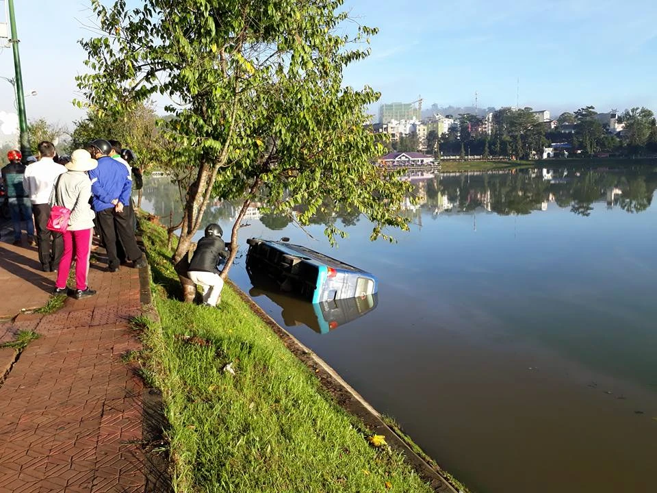Khi xe chạy đến đường Trần Quốc Toản, phường 3, TP Đà Lạt thì bất ngờ lao sang bên phải đường và rơi xuống hồ Xuân Hương.