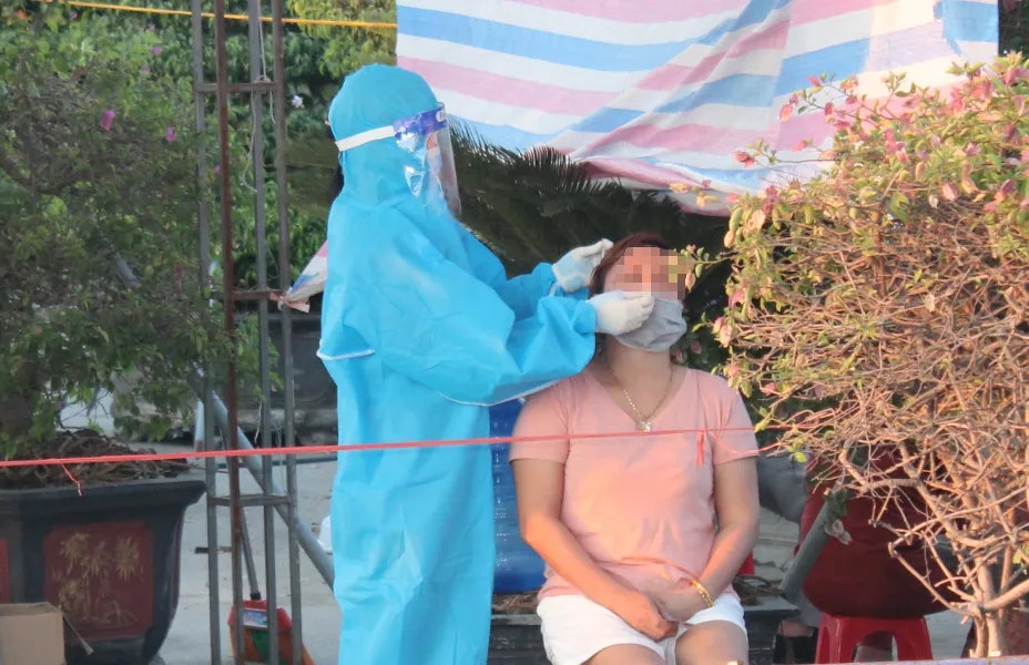Lấy mẫu xét nghiệm cho người dân ở thị xã Cửa Lò (Nghệ An).