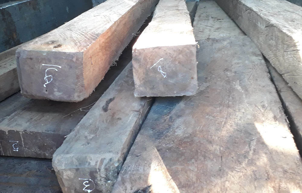 Gần 1 m3 gỗ lậu bị tạm giữ. Ảnh: CA