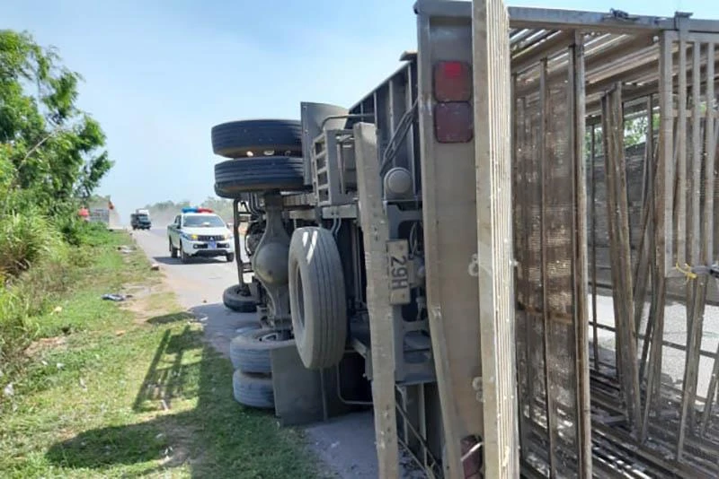 Vụ tai nạn khiến xe chở vịt 1.600 con vịt chỉ còn lại 400 con.
