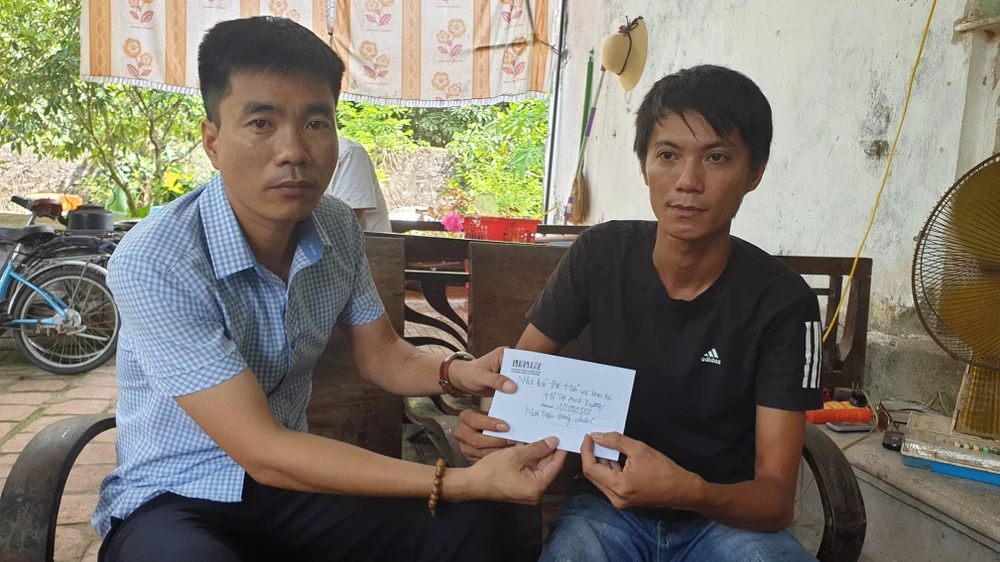 PV PLO trao quà của ông Nguyễn Đức Hiển, Phó Tổng Biên tập báo Pháp Luật TP. HCM và những người bạn cho anh Dương với số tiền 10 triệu đồng.