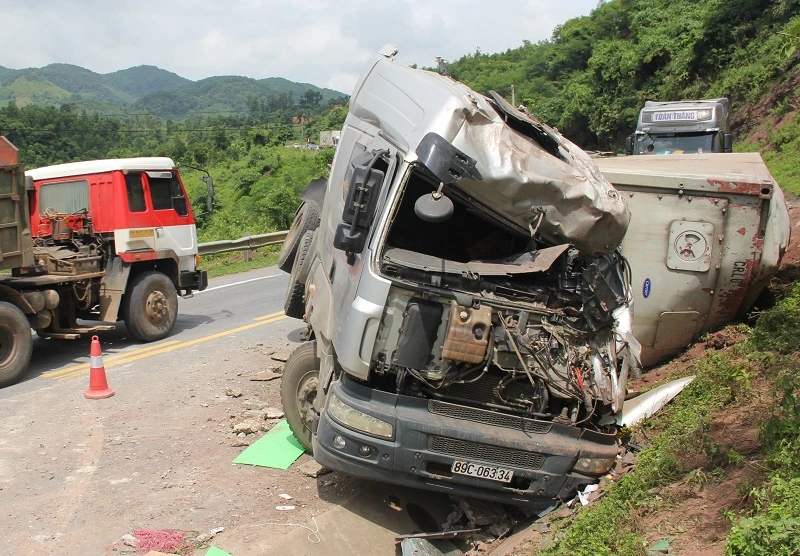 Theo đó, khoảng 22 giờ ngày 4-8, xe tải 09C-063.34 kéo theo rơ-moóc 89R- 007.19 do tài xế Lại Duy Diên (34 tuổi, trú tại Khoái Châu Hưng, Hưng Yên) điều khiển trên quốc lộ 9 theo hướng Lao Bảo-Đông Hà, khi qua thôn Làng Cát, xã Đakrông thì mất lái lao vào vách núi bên trái đường.