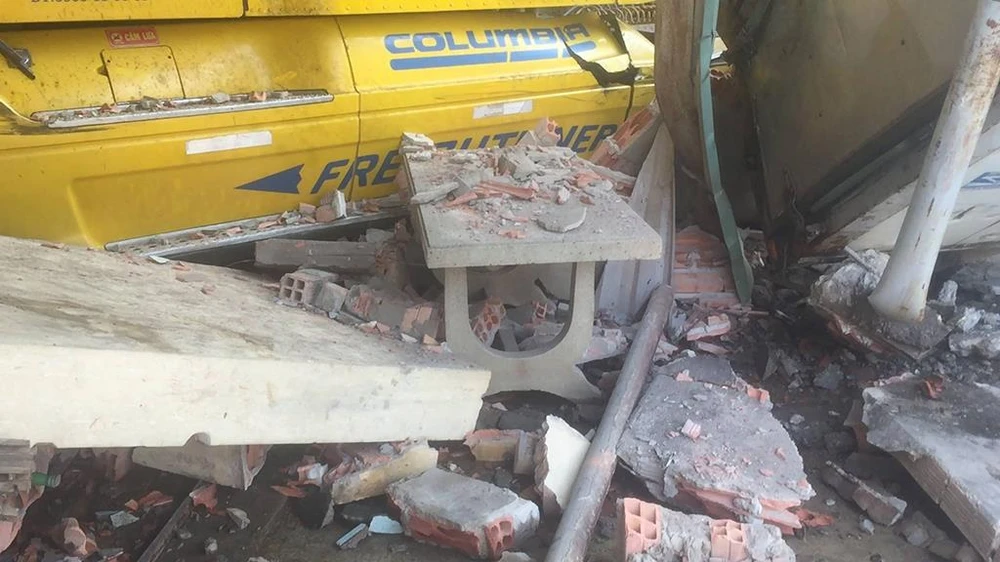 Theo quan sát, toàn bộ phần trước số nhà 1431 bị đổ sập hoàn toàn. Ngoài ra, 1 phần của cửa hàng vật liệu xây dựng cũng bị hư hỏng. Riêng đầu xe container biến dạng, nằm trong căn nhà 1431.