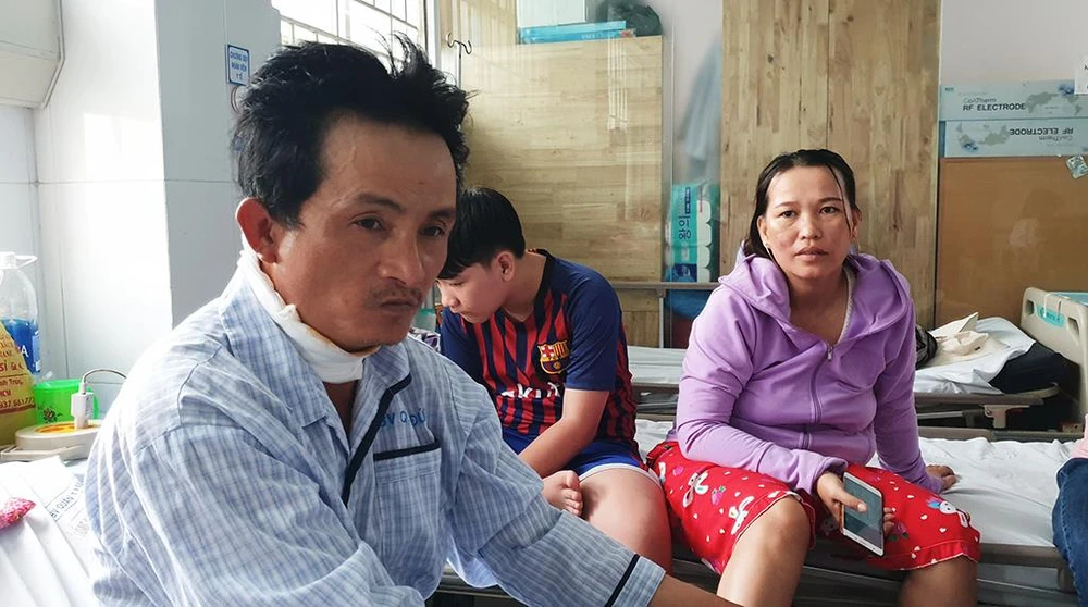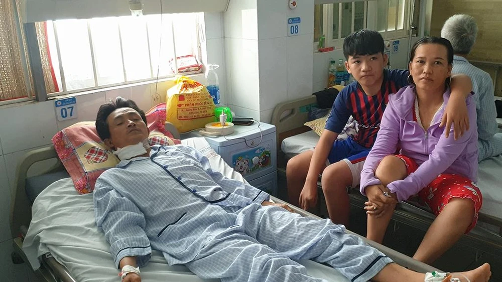 Bà Huỳnh Thị Lệ Thi (36 tuổi, vợ ông Mỹ) ngồi sát chồng, mắt thất thần. "Tôi nhận tin rụng cả tay chân. Bộ quần áo ông ấy sũng máu, không còn thều thào gì được”. Đại gia đình ở quê nhanh chóng biết tin, những người cháu ruột ở TP.HCM gần như có mặt ngay lập tức ở bệnh viện để cho máu, truyền cho nạn nhân.