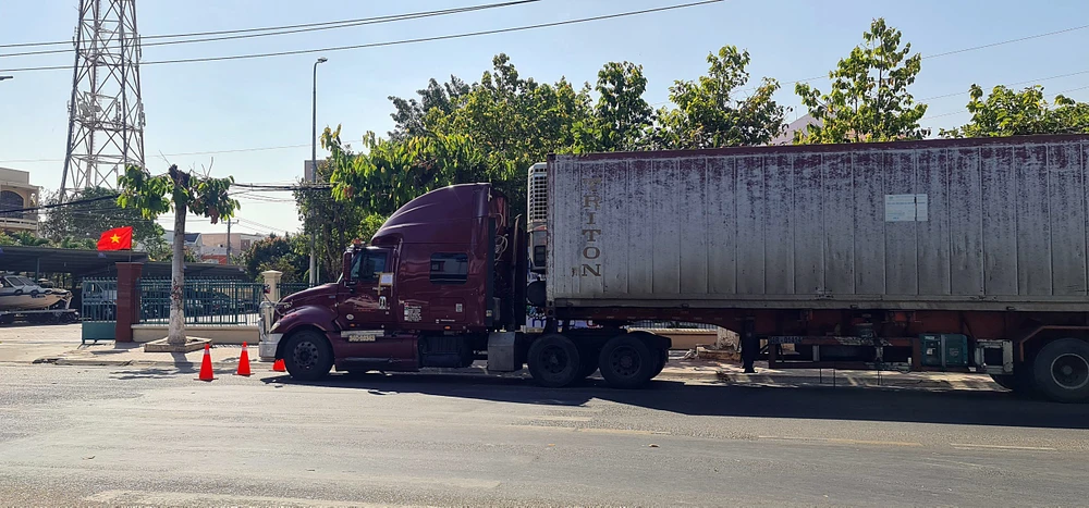 Xe đầu kéo đậu trước Phòng CSGT Công an Bình Thuận.