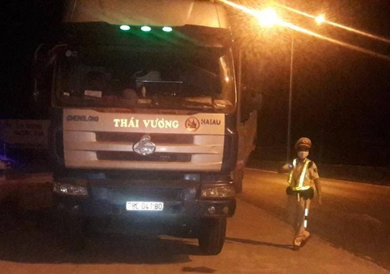 Theo đó, khuya 18-5, tại tuyến quốc lộ 1A (đoạn qua xã Bình Phục, huyện Thăng Bình, Quảng Nam), tổ công tác Trạm CSGT Thăng Bình ra hiệu lệnh yêu cầu dừng xe tải 78C-041.80 để kiểm tra tải trọng.