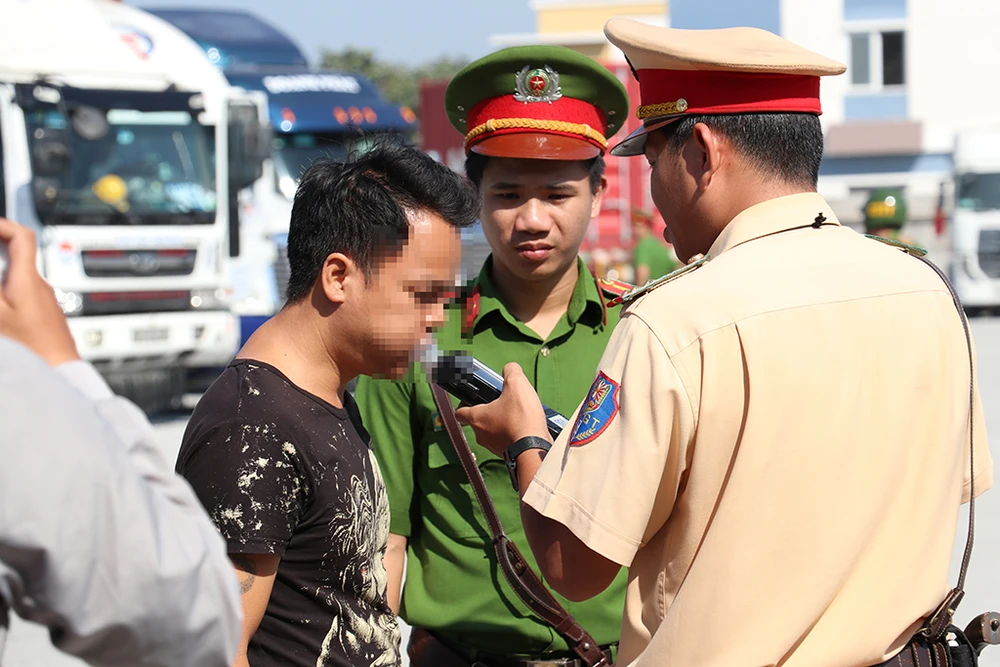 Công an cũng kiểm tra nồng độ cồn đối với các tài xế này. Ảnh: M.VƯƠNG
