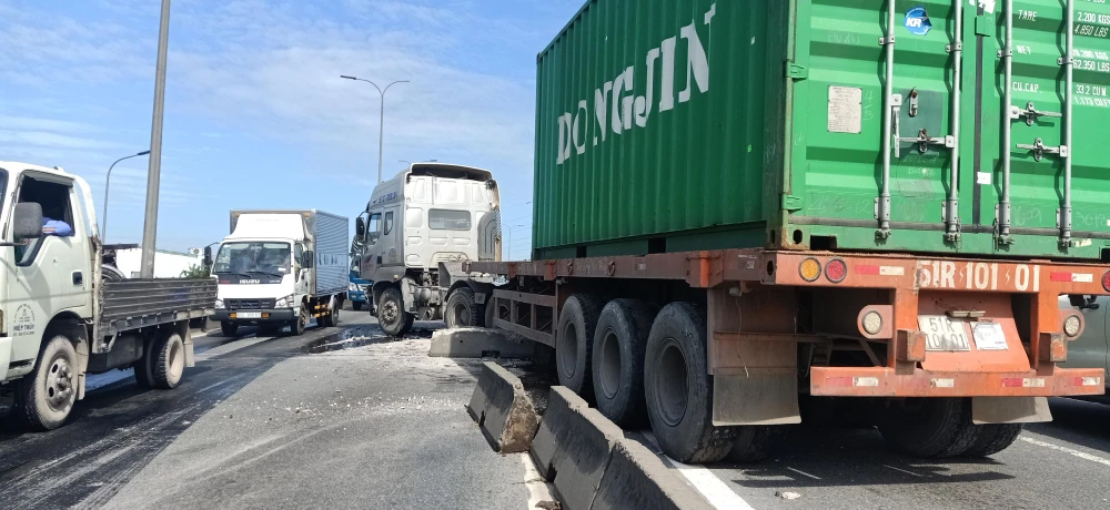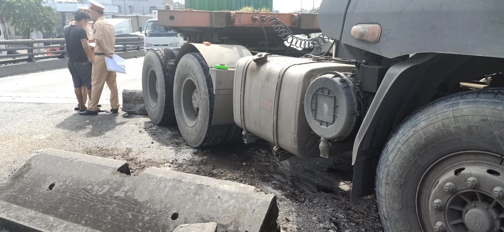 Khoảng 8 giờ 30 sáng 30-7, container 51C-399.84 do nam thanh niên khoảng 30 tuổi điều khiển chạy trên trên cầu vượt Tân Thới Hiệp hướng từ Thủ Đức về An Sương thì lao vào dải phân cách.