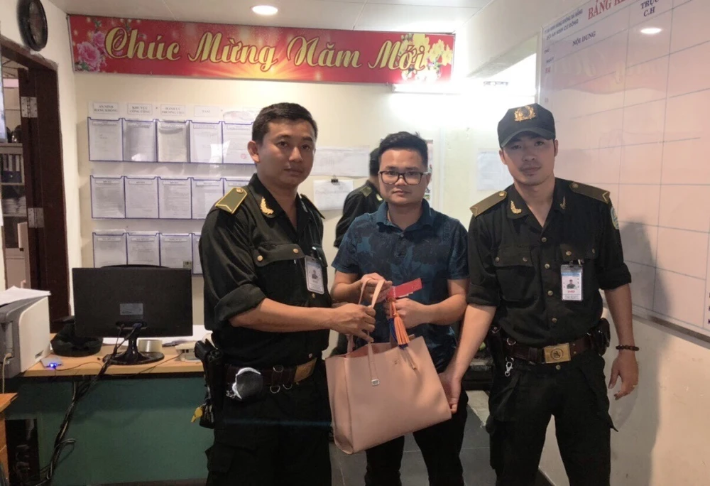 Lực lượng An ninh Hàng không trả lại túi xách cho khách. Ảnh: ANHK cung cấp
