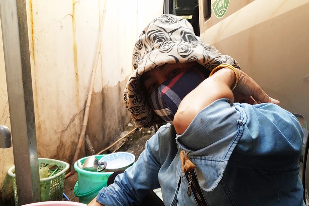 Lúc này, bà Hoa đang bán nước mía thấy vậy nên tháo chạy, vấp té. Ảnh: NT