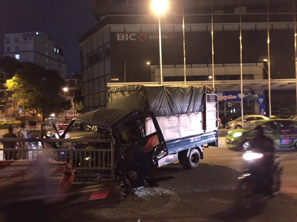 Khoảng 22 giờ 40 ngày 4-11, xe tải biển số 29C-257.21 đang lưu thông trên đường Trần Quang Khải theo hướng từ cầu Chương Dương về Bảo tàng Lịch sử (Hà Nội) thì bất ngờ mất lái lao thẳng vào lề đường.