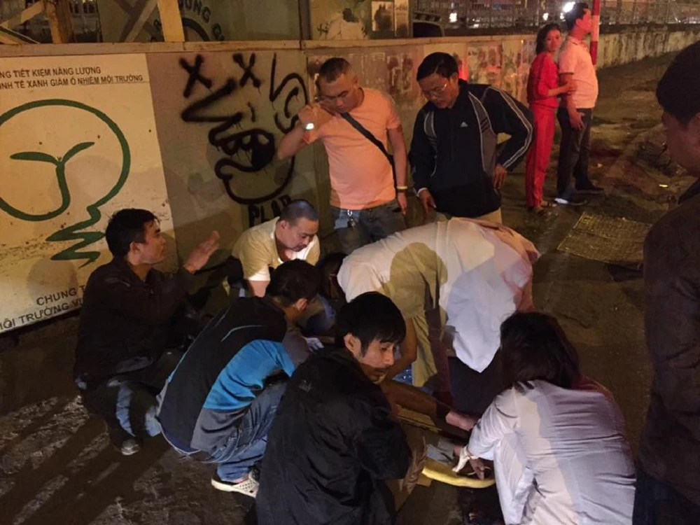 Ít phút sau, xe cấp cứu 115 có mặt kịp thời, nạn nhân được đưa vào bệnh viện trong tình trạng khá đau đớn vì bị gãy chân.